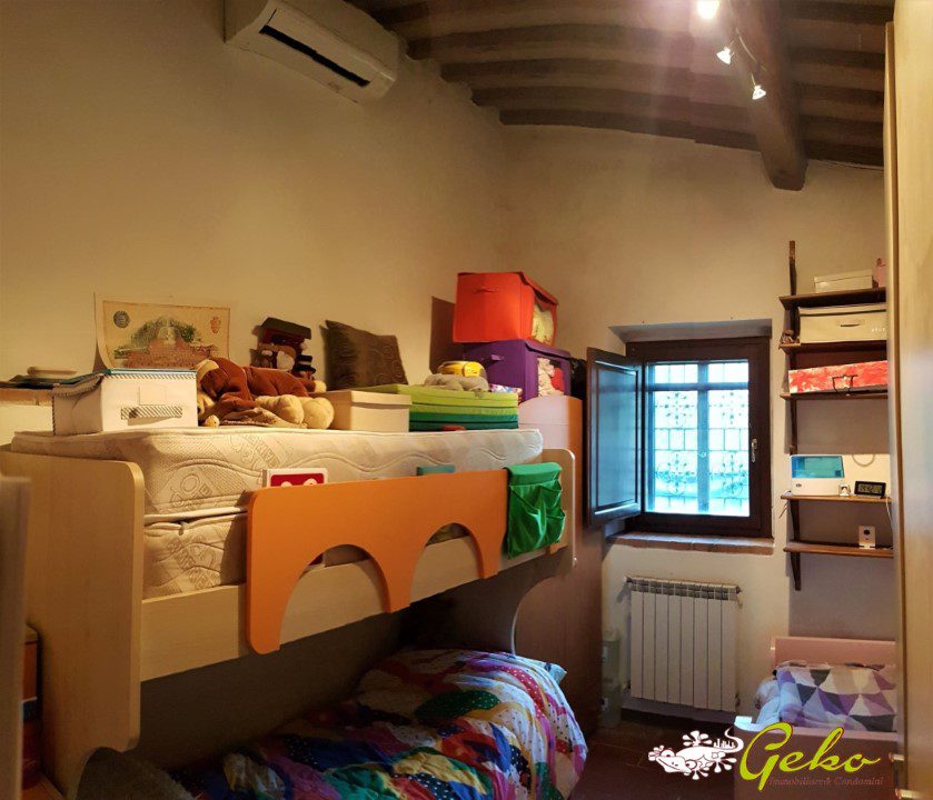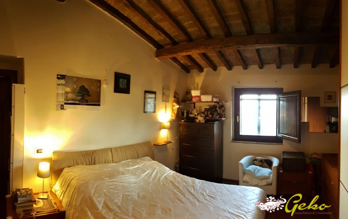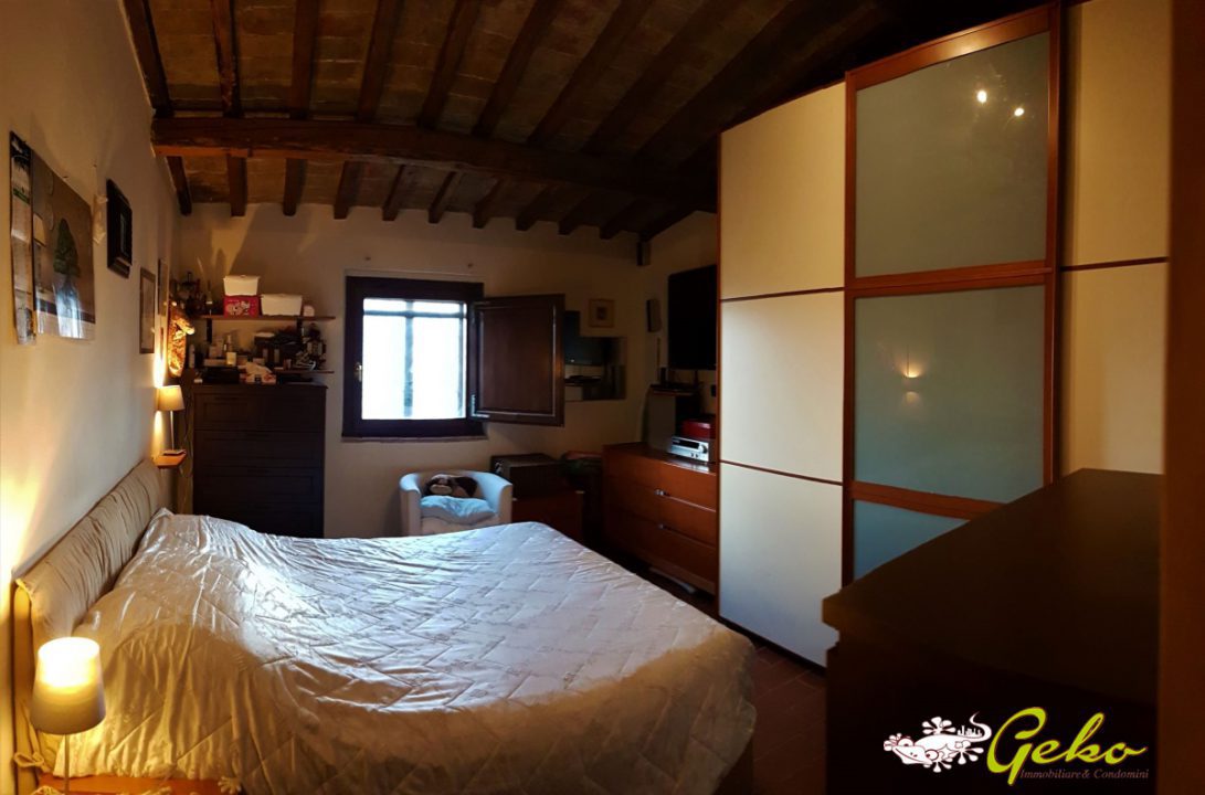 The property features rustic finishes such as terracotta floors, exposed wooden beam ceilings, and some windows with traditional Tuscan-style grilles typical of country cottages, enhancing the authenticity of the structure and its unique Tuscan style, while maintaining bright and welcoming interiors with a truly charming atmosphere.