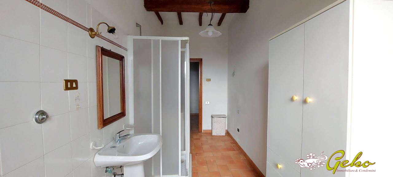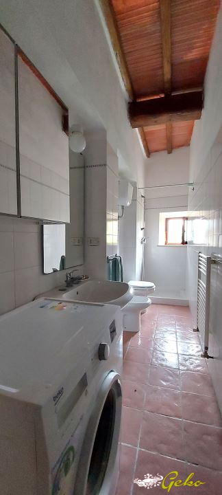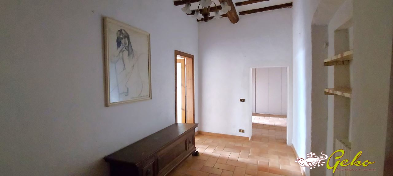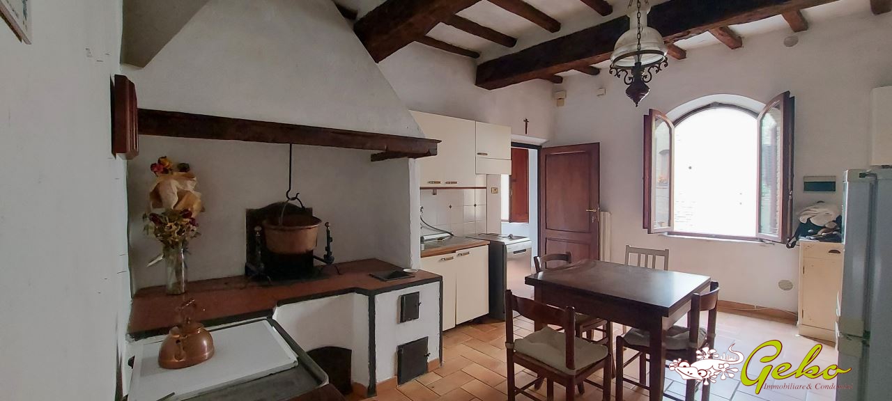 L'abitazione, in ottimo stato di manutenzione, è situata al primo piano di una piccola palazzina composta da sole tre unità, con spese condominiali minime. L'ingresso, tramite una suggestiva scala in pietra, conduce da un lato alla spaziosa cucina con caminetto a legna originale, e dall'altro al grande salone.