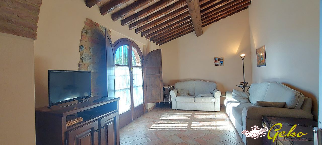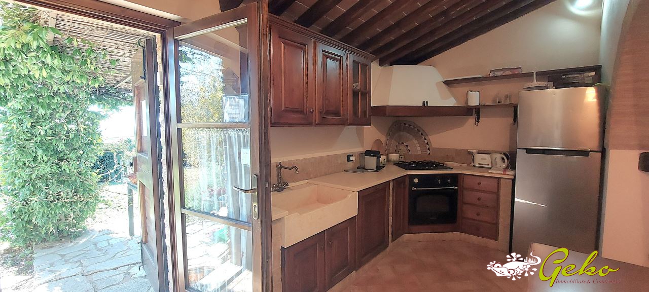 Splendida casa di campagna situata nel cuore della Toscana, all'interno di un piccolo borgo collinare. L' abitazione si trova in un antico casolare in pietra finemente ristrutturato , che conserva tutto il fascino autentico della tradizione toscana come i soffitti a travi e travicelli . Una location da sogno, immersa completamente nella natura e circondata da uno scenario mozzafiato.