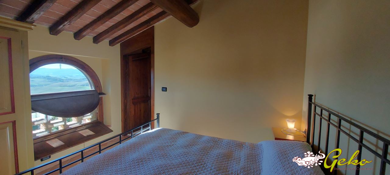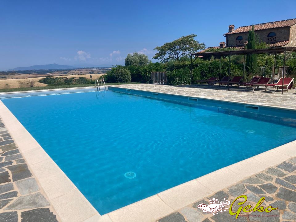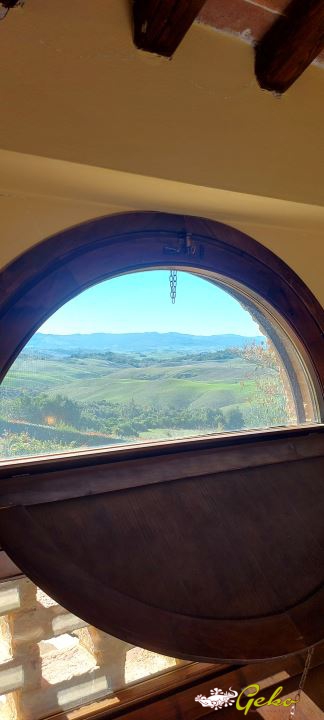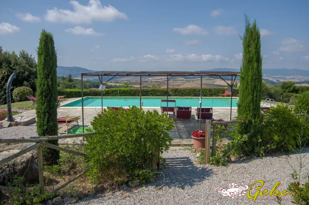 Il borgo è circondato da un grande parco verde e dispone di una piscina condominiale situata proprio di fronte alla casa, da cui si gode una vista panoramica a 360° sulla campagna toscana nella sua massima bellezza.